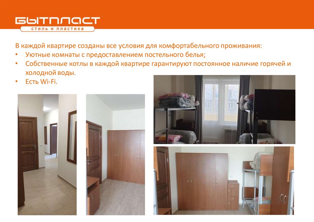 • Проживание в комнате с коллегами, без подселения посторонних.