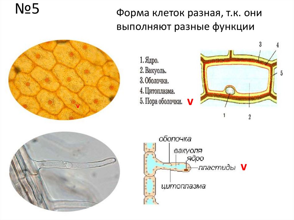 №5Форма клеток разная, т.к. они