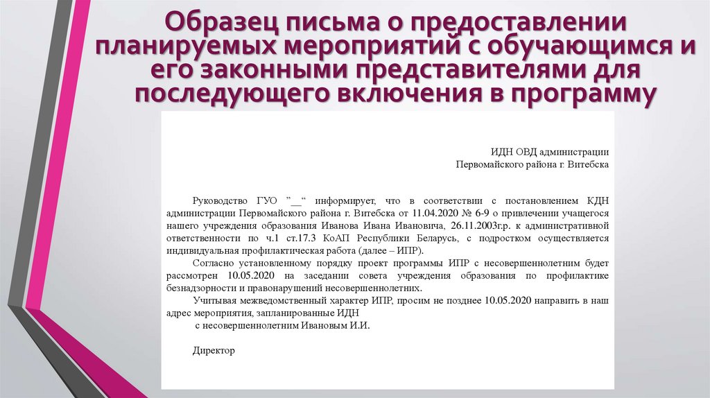 (пункт 1.5.1 протокола заседания КДН при Совете