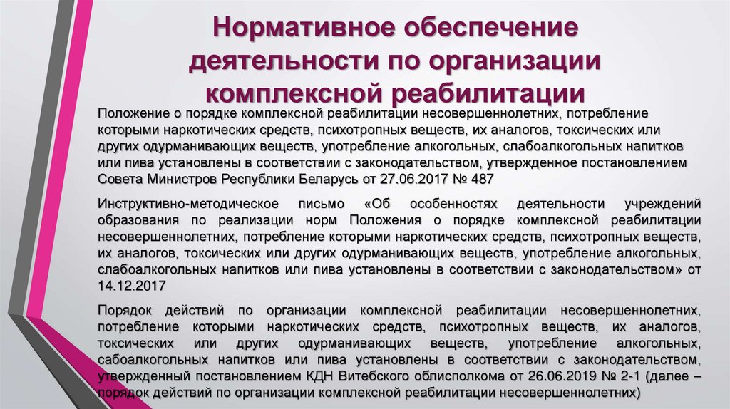 Положение о порядке комплексной реабилитации несовершеннолетних, потребление