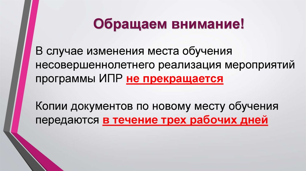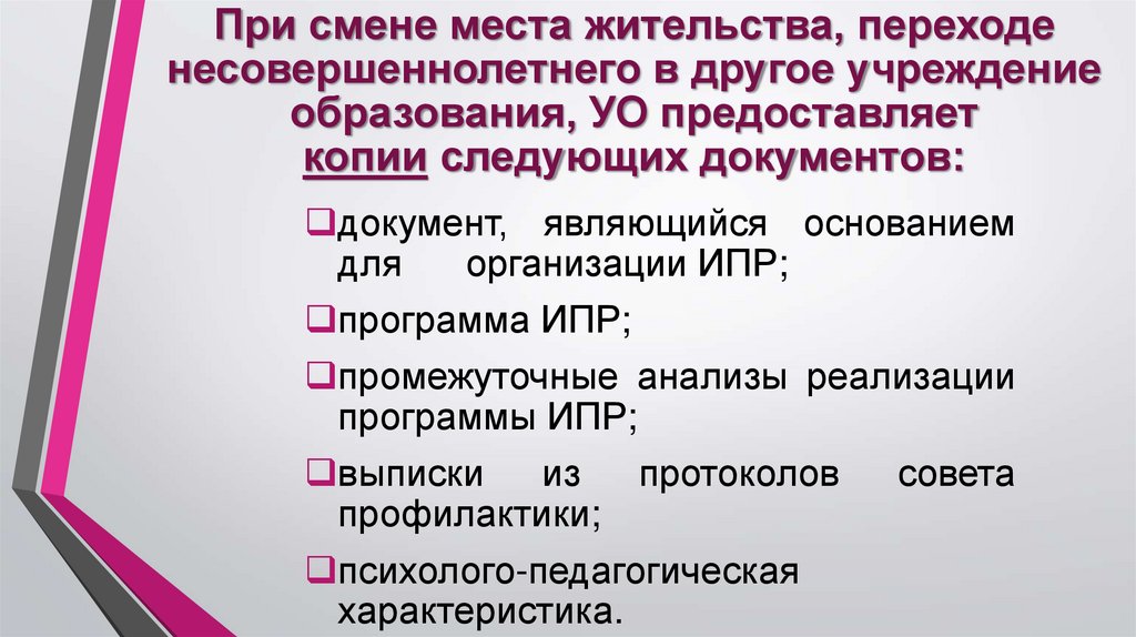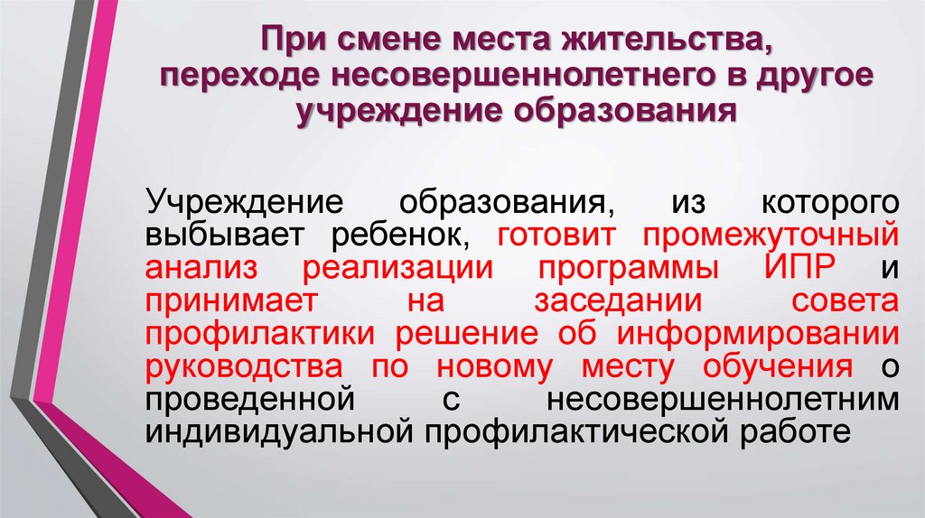 При смене места жительства, переходенесовершеннолетнего в другое учреждение