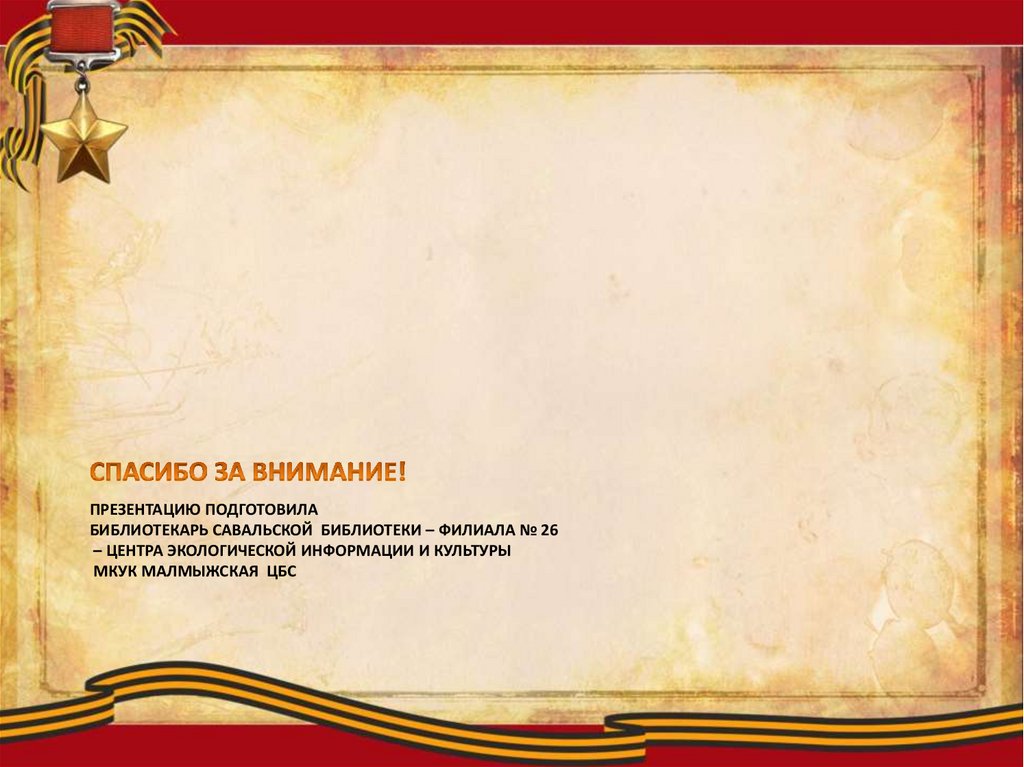 БИБЛИОТЕКАРЬ САВАЛЬСКОЙ БИБЛИОТЕКИ – ФИЛИАЛА № 26