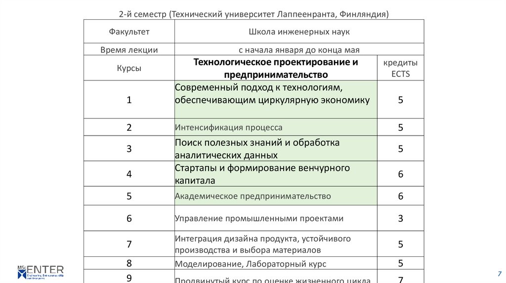 2-й семестр (Технический университет Лаппеенранта, Финляндия)Факультет