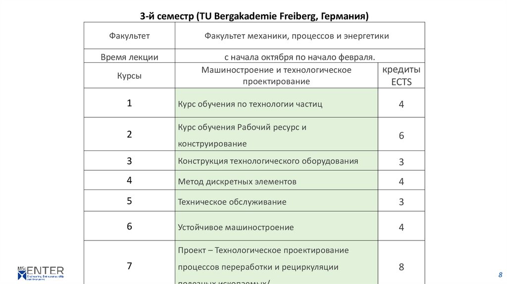 3-й семестр (TU Bergakademie Freiberg, Германия)Факультет