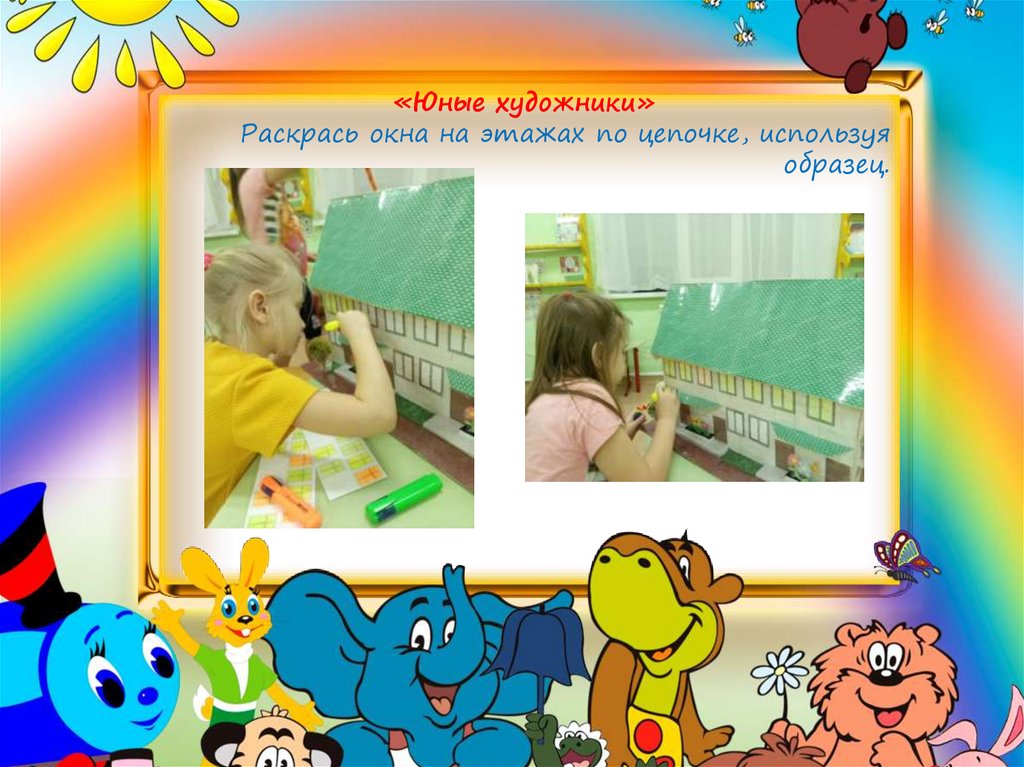 «Юные художники»Раскрась окна на этажах по цепочке, используя