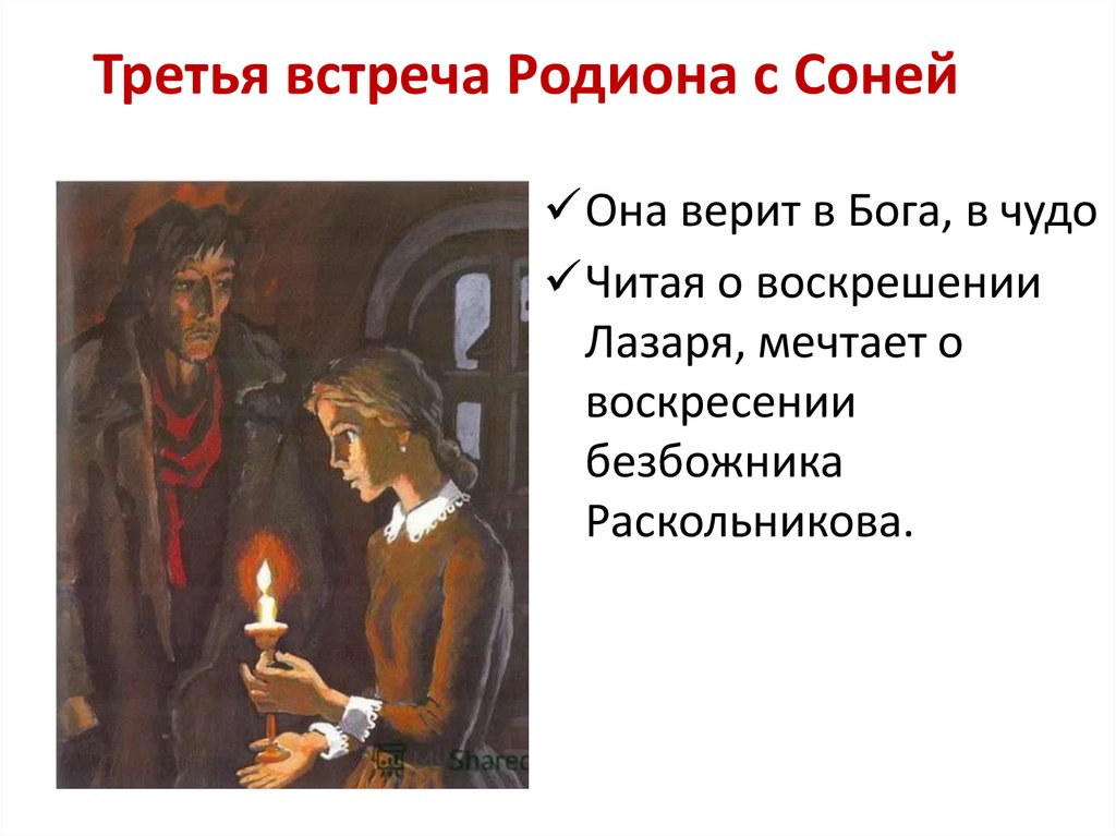 Третья встреча Родиона с СонейОна верит в Бога, в чудо