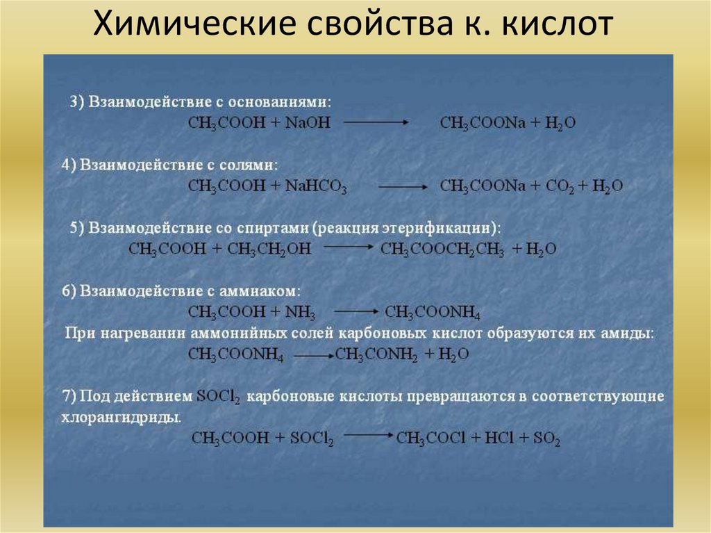 Химические свойства к. кислот12.