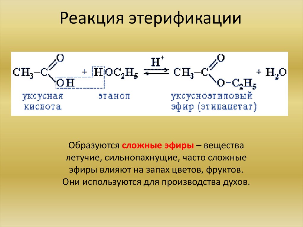 Реакция этерификацииОбразуются сложные эфиры – вещества