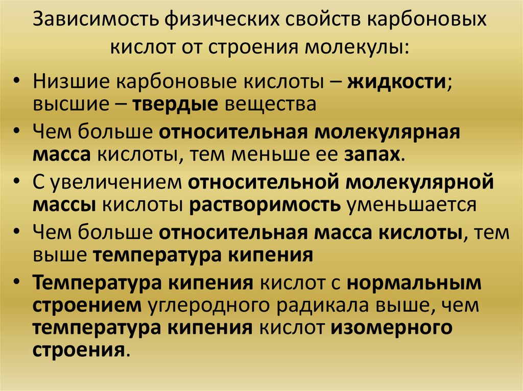 Зависимость физических свойств карбоновых