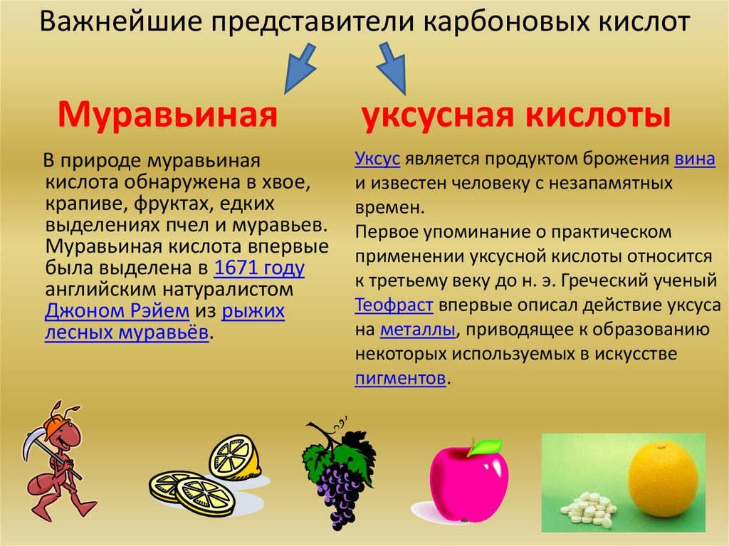 Важнейшие представители карбоновых кислотМуравьиная
