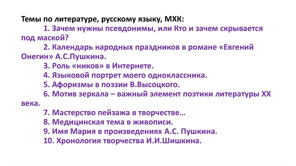 Темы по литературе, русскому языку, МХК:1. Зачем нужны псевдонимы, или Кто и зачем скрывается