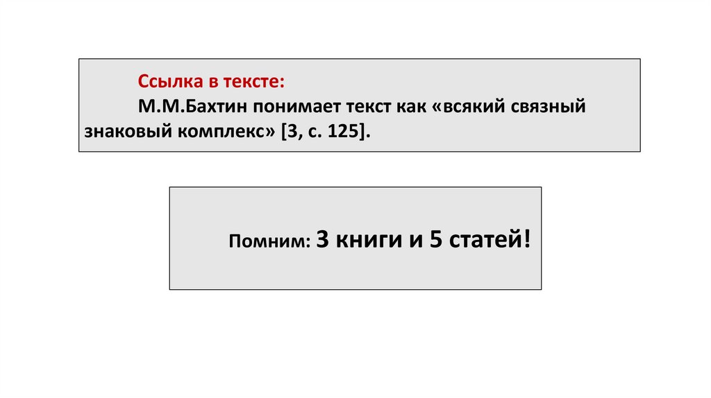 Ссылка в тексте:М.М.Бахтин понимает текст как «всякий связный