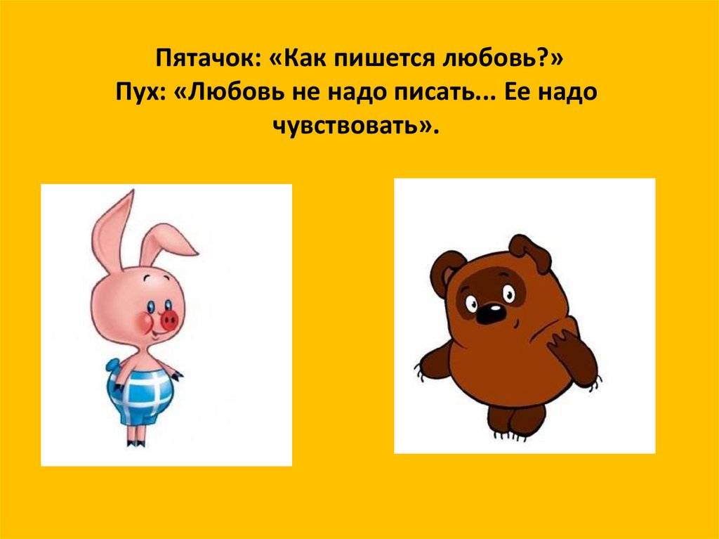 Пятачок: «Как пишется любовь?»Пух: «Любовь не надо писать... Ее надо