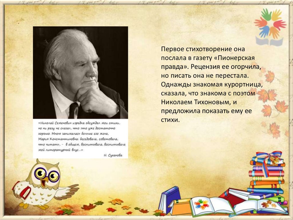 Первое стихотворение онапослала в газету «Пионерская