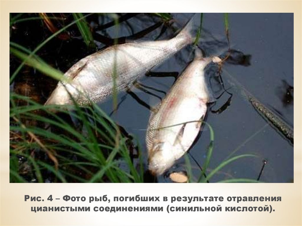 Рис. 4 – Фото рыб, погибших в результате отравленияцианистыми соединениями (синильной кислотой).