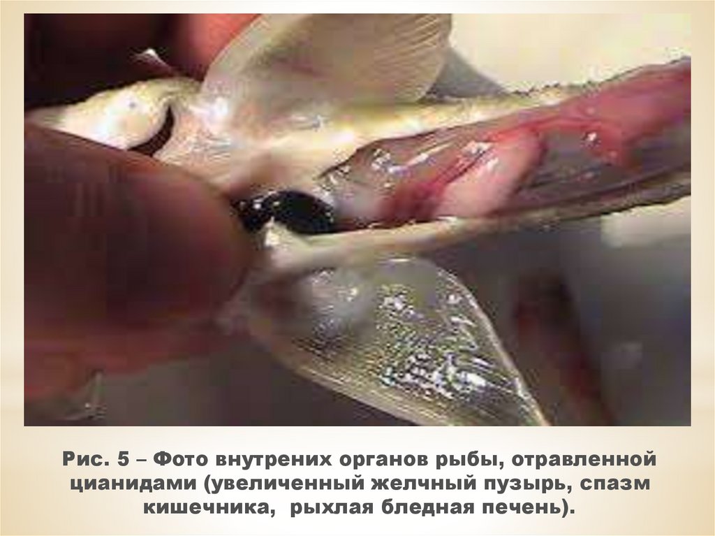 Рис. 5 – Фото внутрених органов рыбы, отравленнойцианидами (увеличенный желчный пузырь, спазм