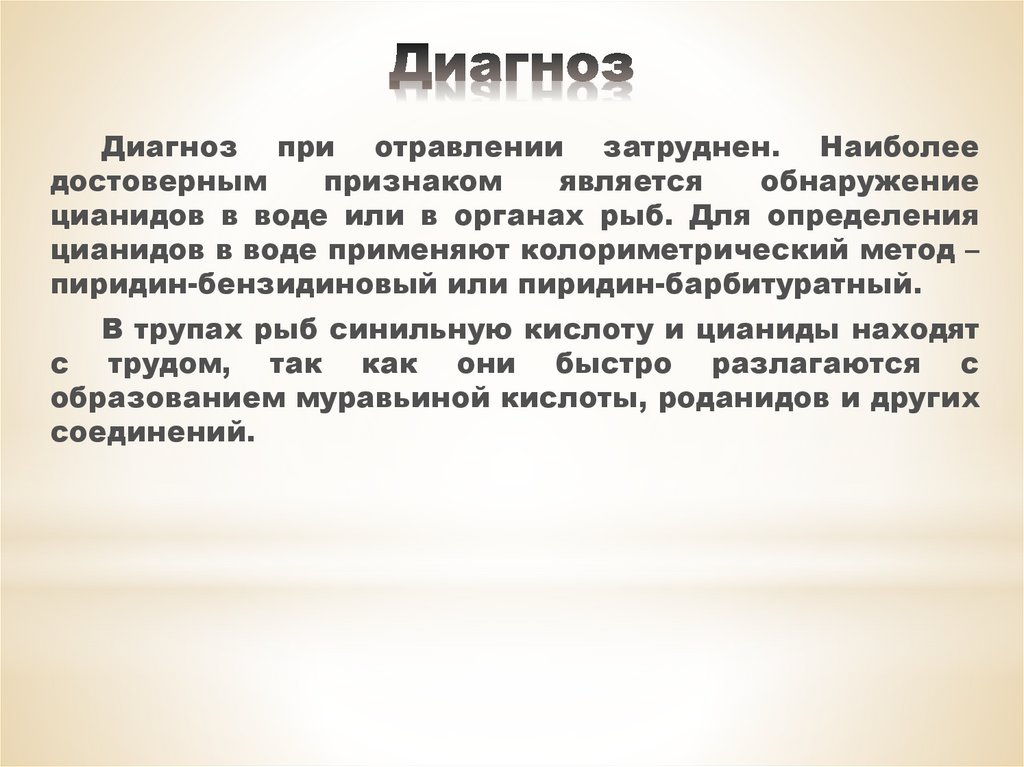 Диагноз при отравлении затруднен. Наиболеедостоверным