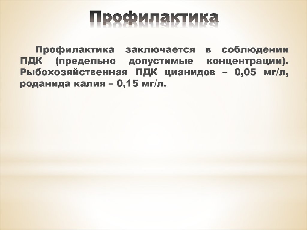 Рыбохозяйственная ПДК цианидов – 0,05 мг/л,