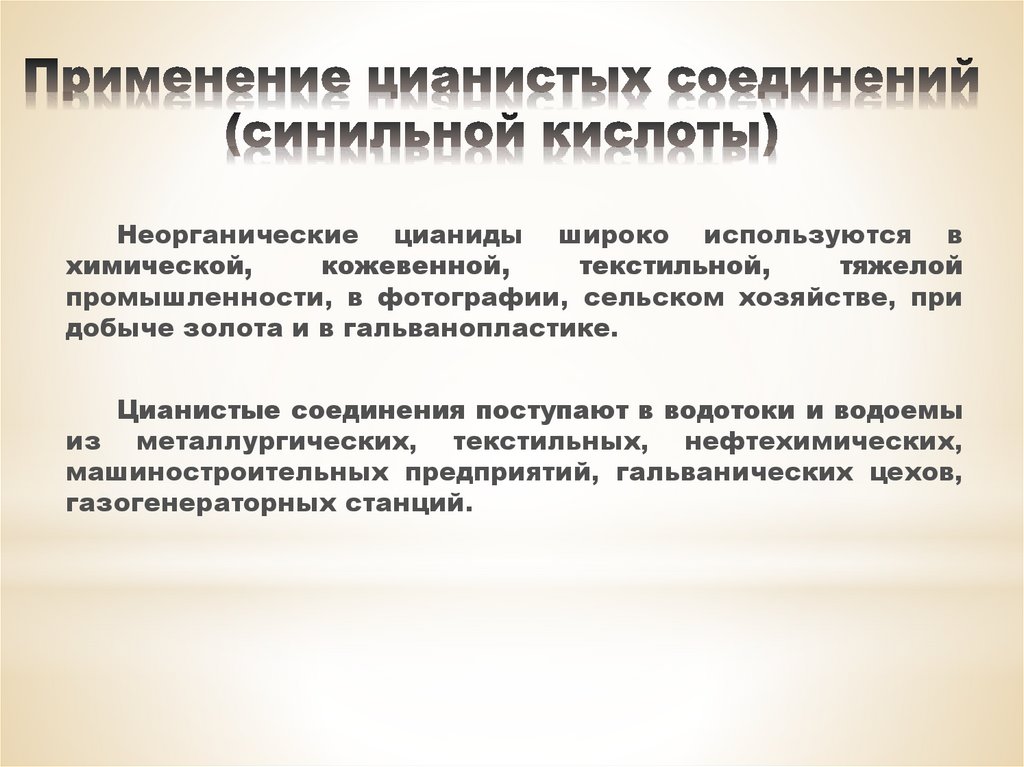 кальция) и органические цианиды (эфиры цианмуравьиной и