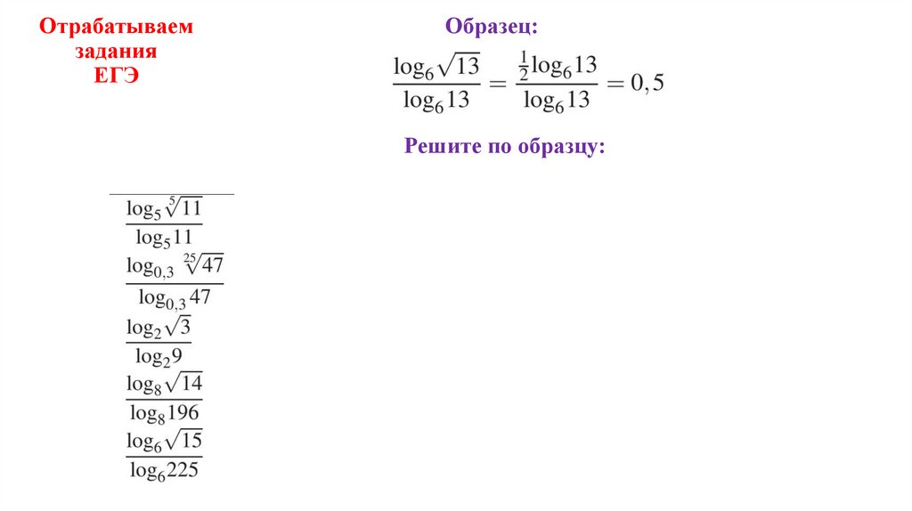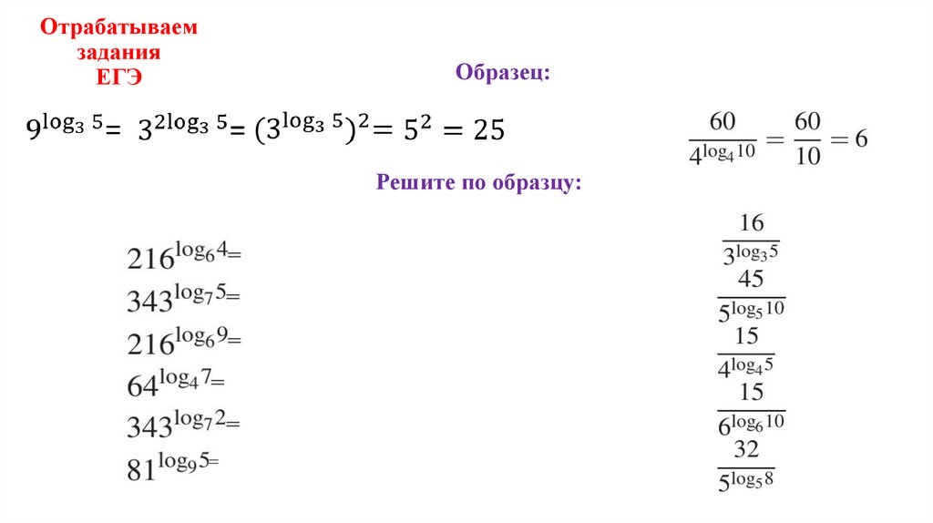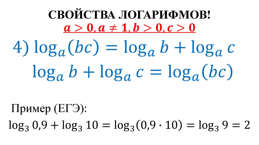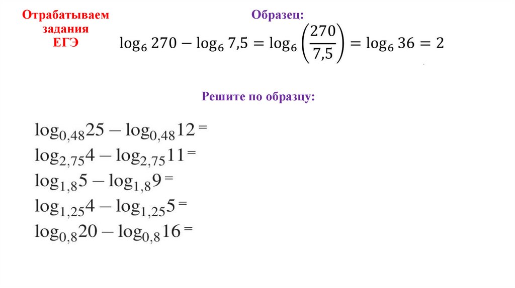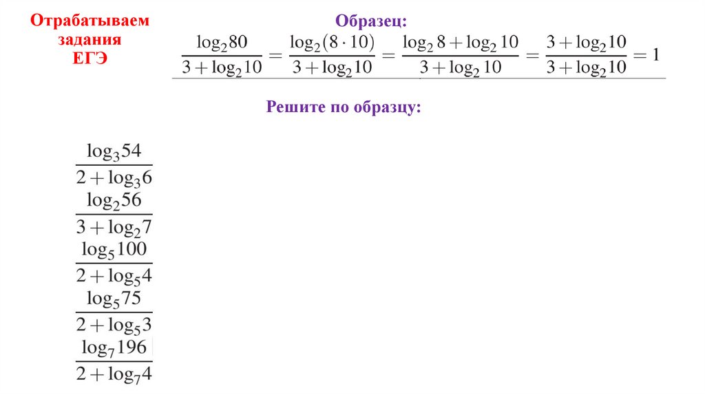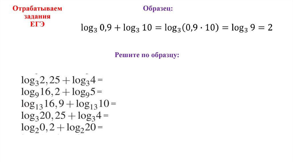 Свойства логарифмов. Отработка заданий ЕГЭ