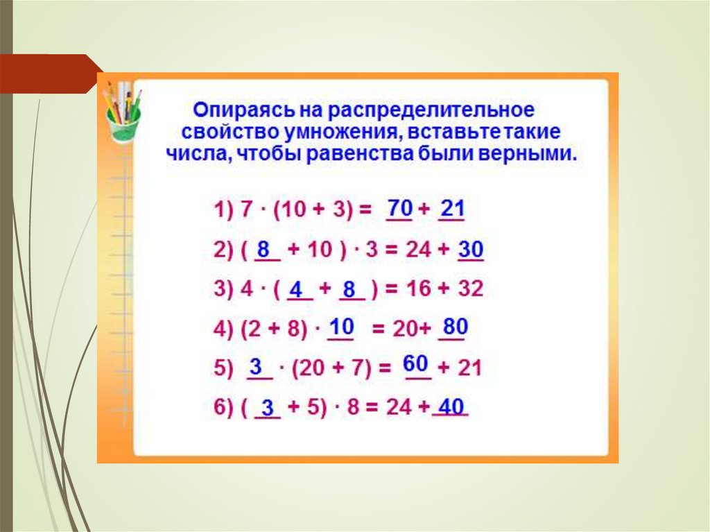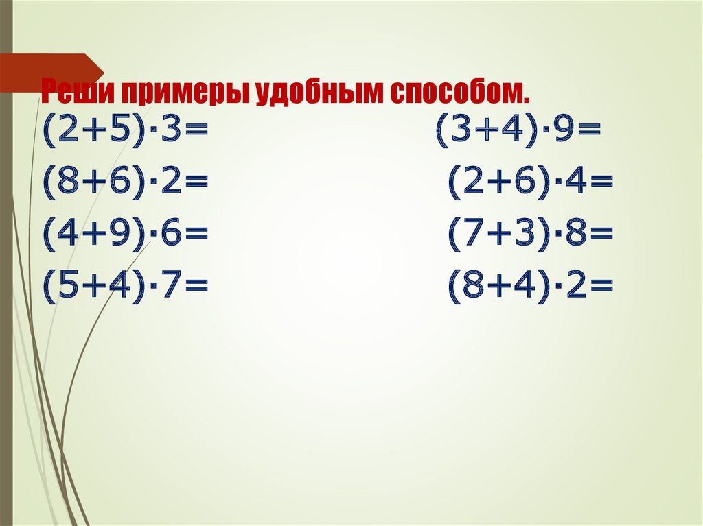 Реши примеры удобным способом.(2+5)∙3=