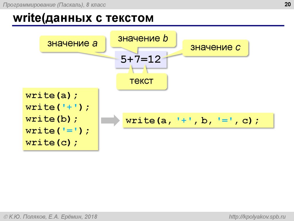 write(a, '+', b, '=', c);