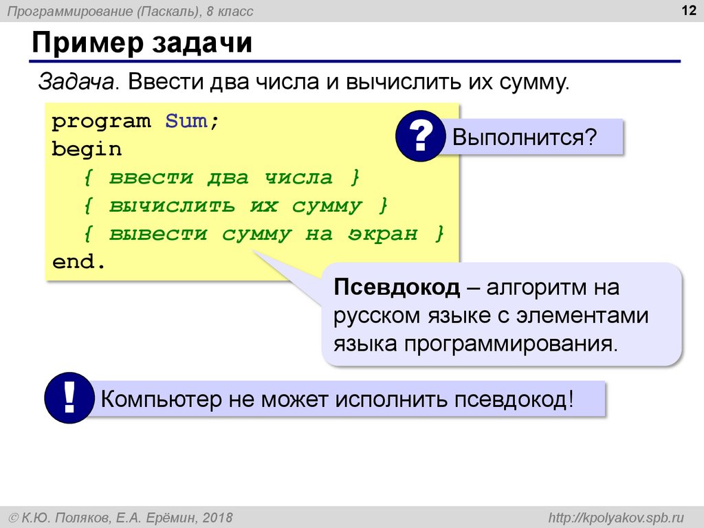 Компьютер не может исполнить псевдокод!