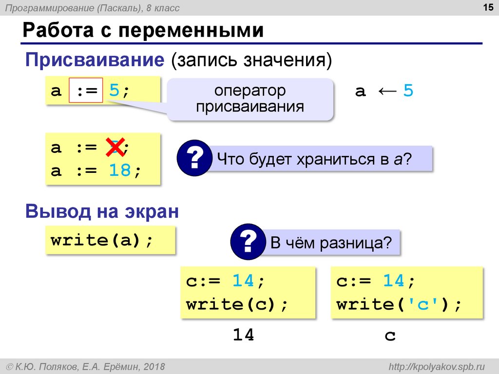 Присваивание (запись значения)