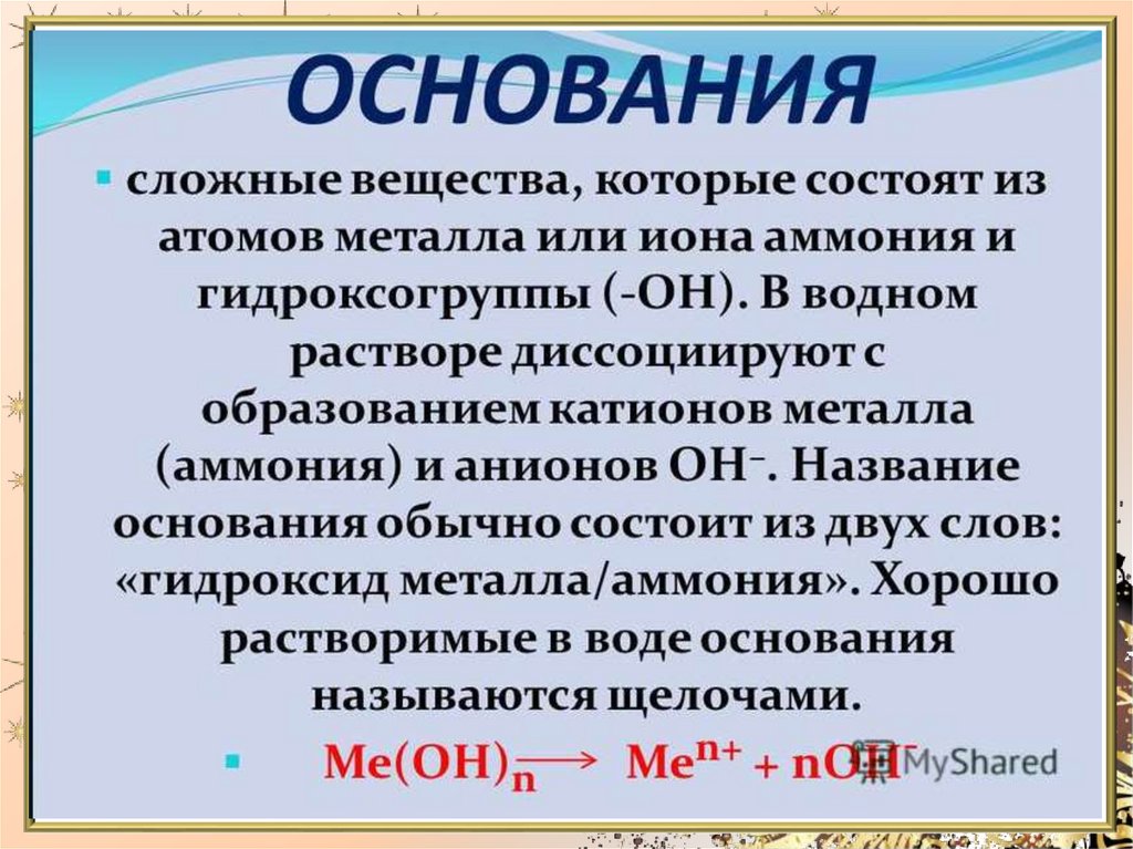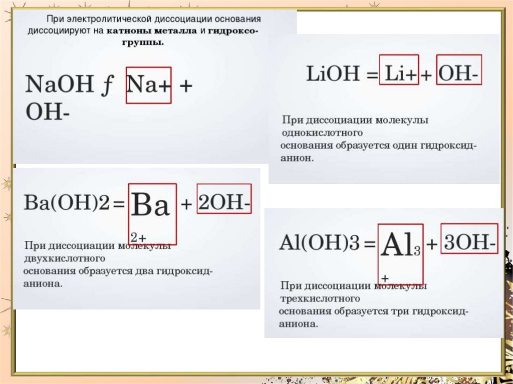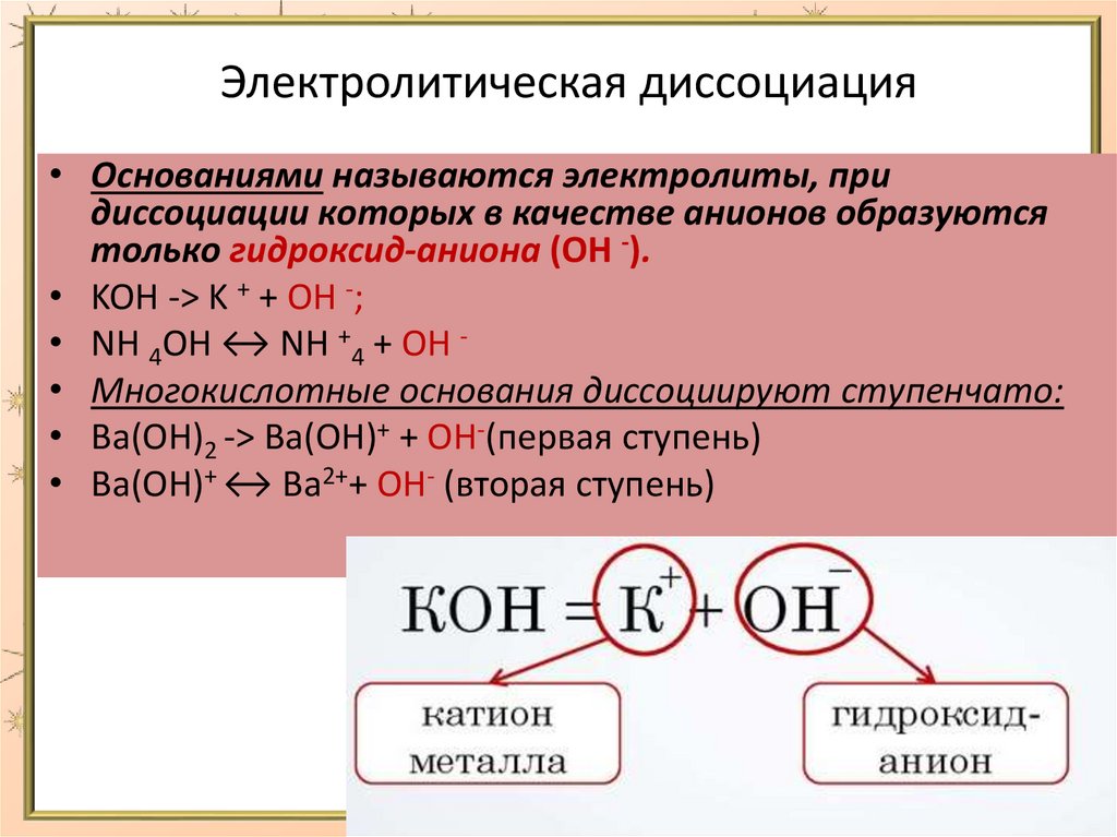 Электролитическая диссоциация• Основаниями называются электролиты, при