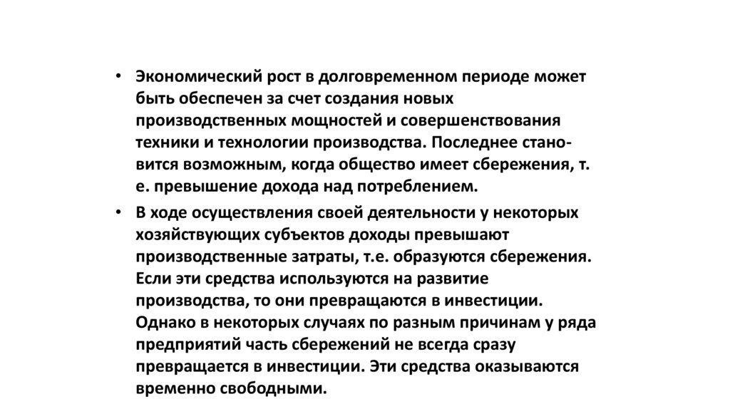 • Экономический рост в долговременном периоде можетбыть обеспечен за счет создания новых