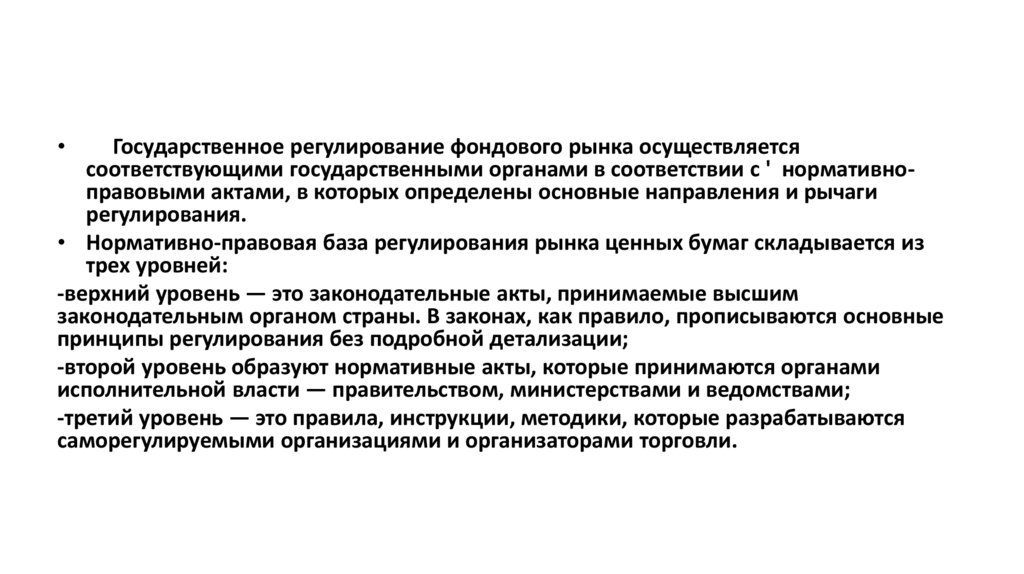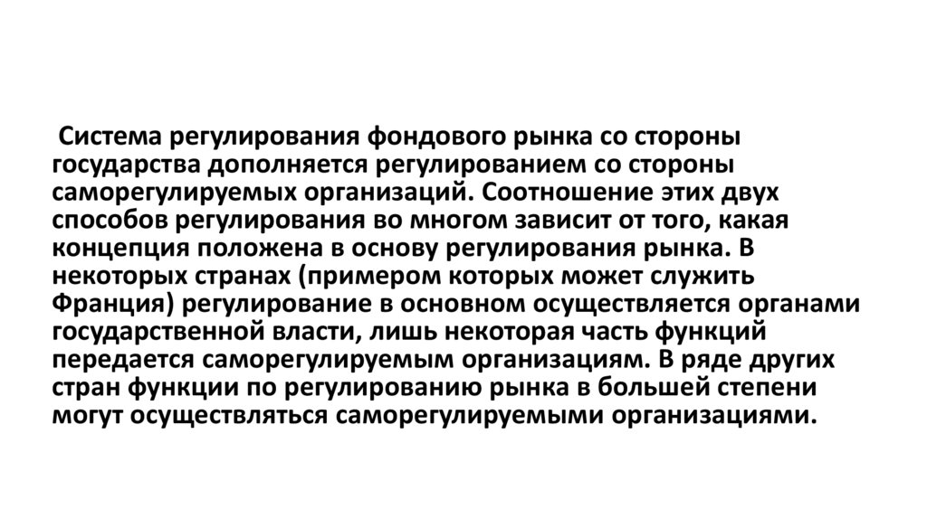 Система регулирования фондового рынка со стороныгосударства дополняется регулированием со стороны