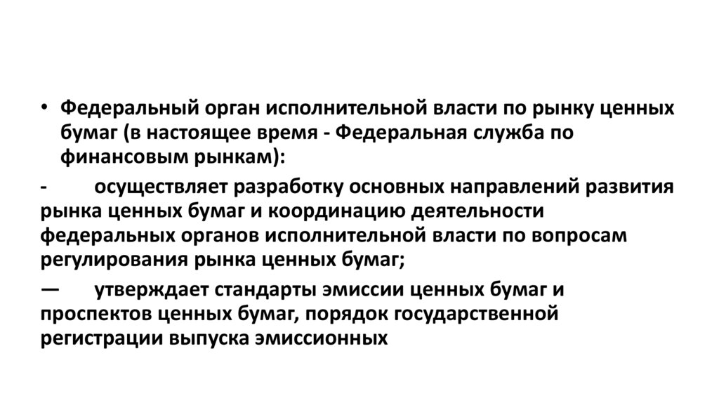 • Федеральный орган исполнительной власти по рынку ценныхбумаг (в настоящее время - Федеральная служба по