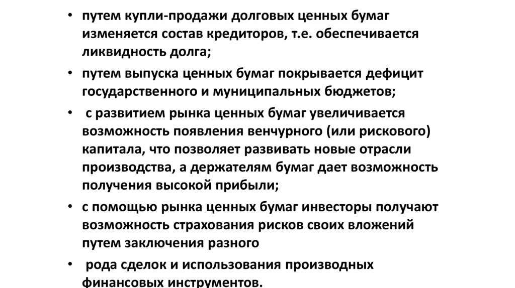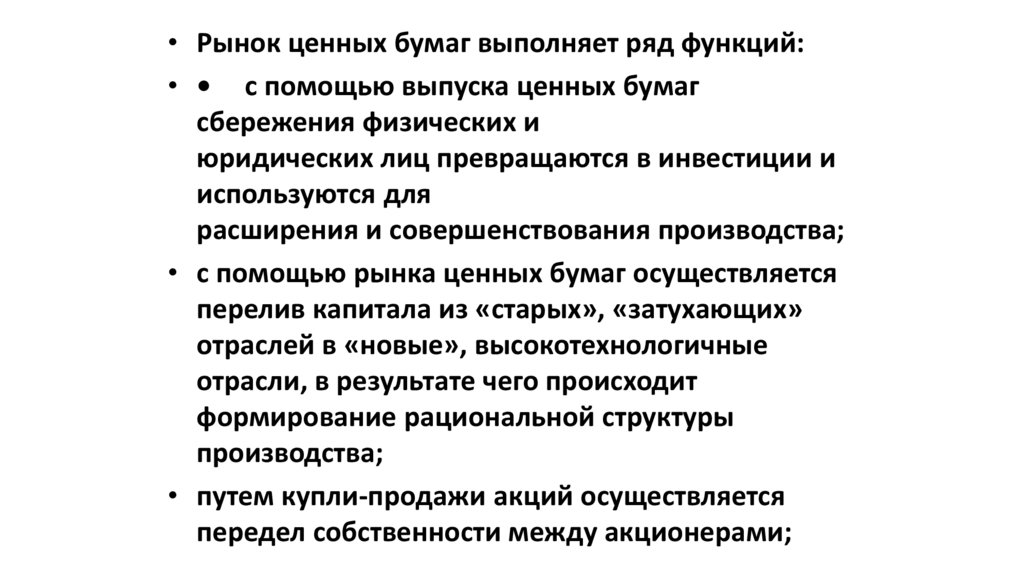 • Рынок ценных бумаг выполняет ряд функций:• • с помощью выпуска ценных бумаг