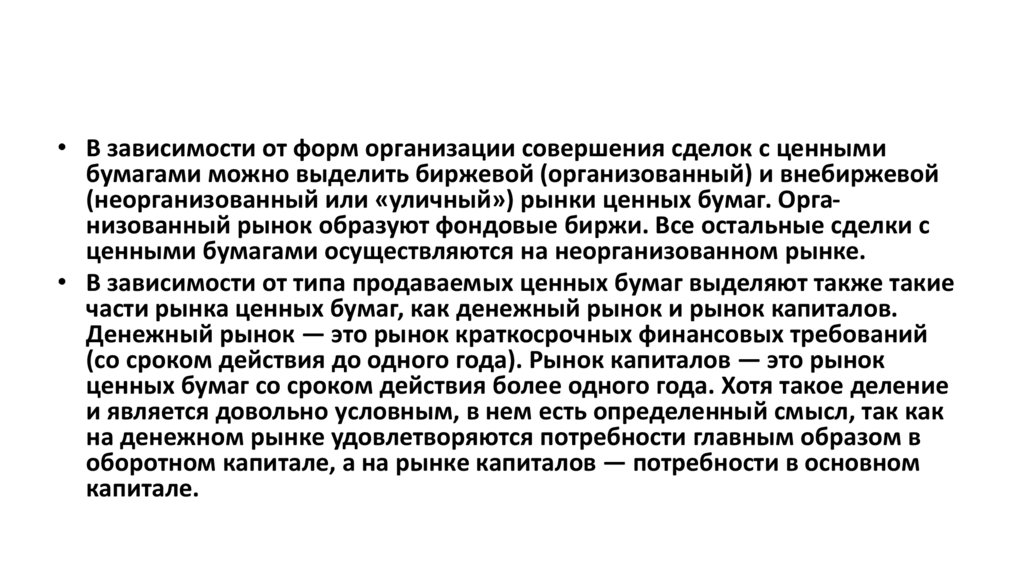 части рынка ценных бумаг, как денежный рынок и рынок капиталов.