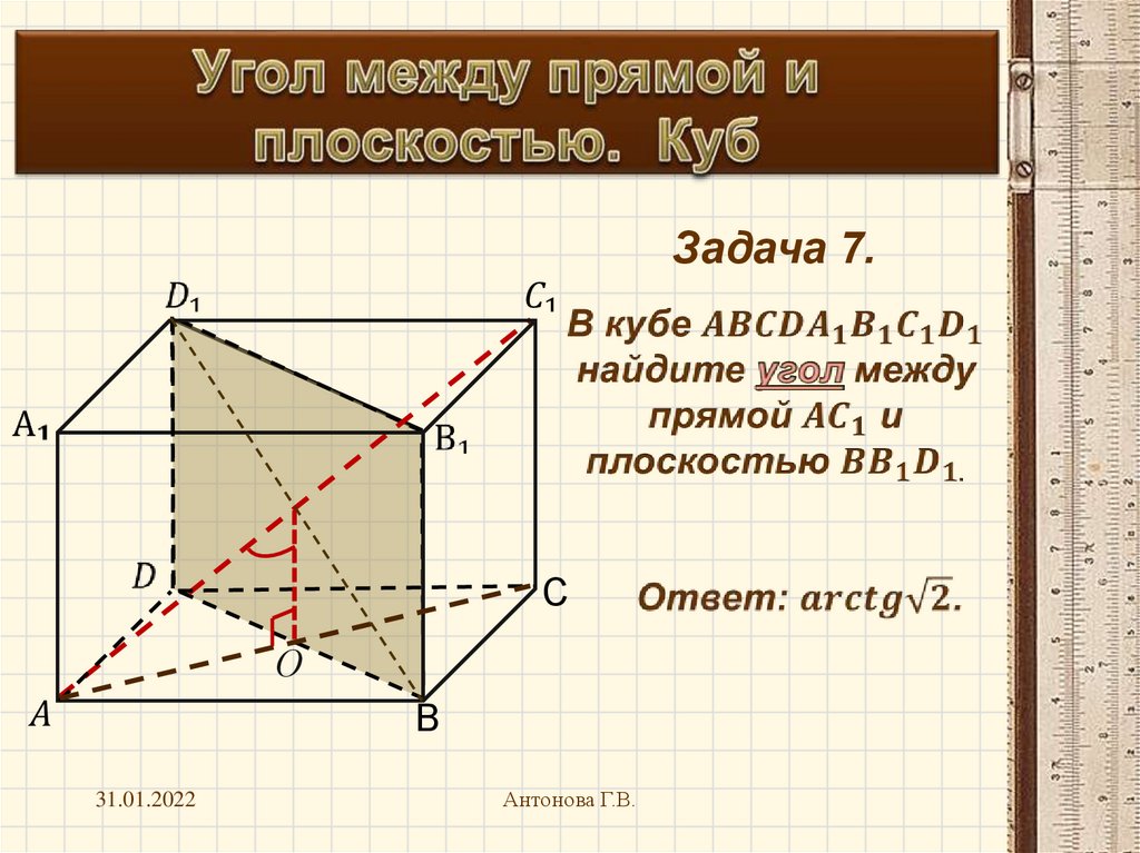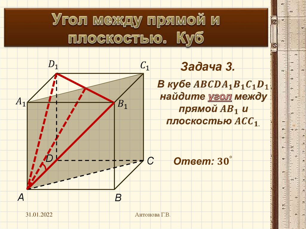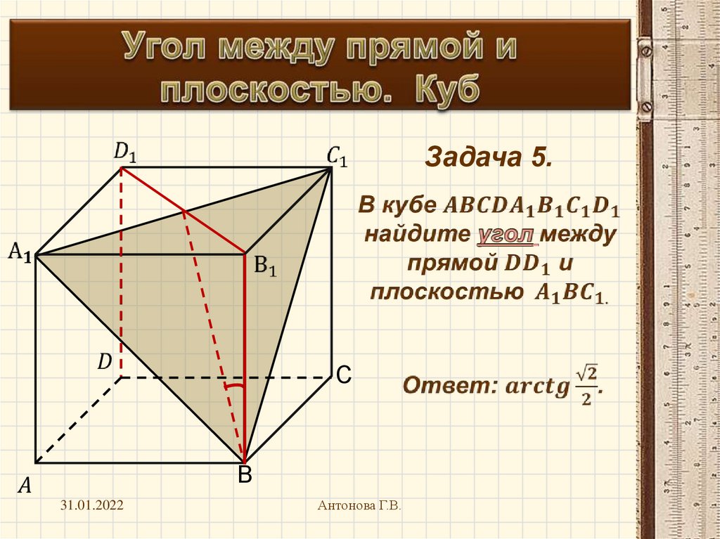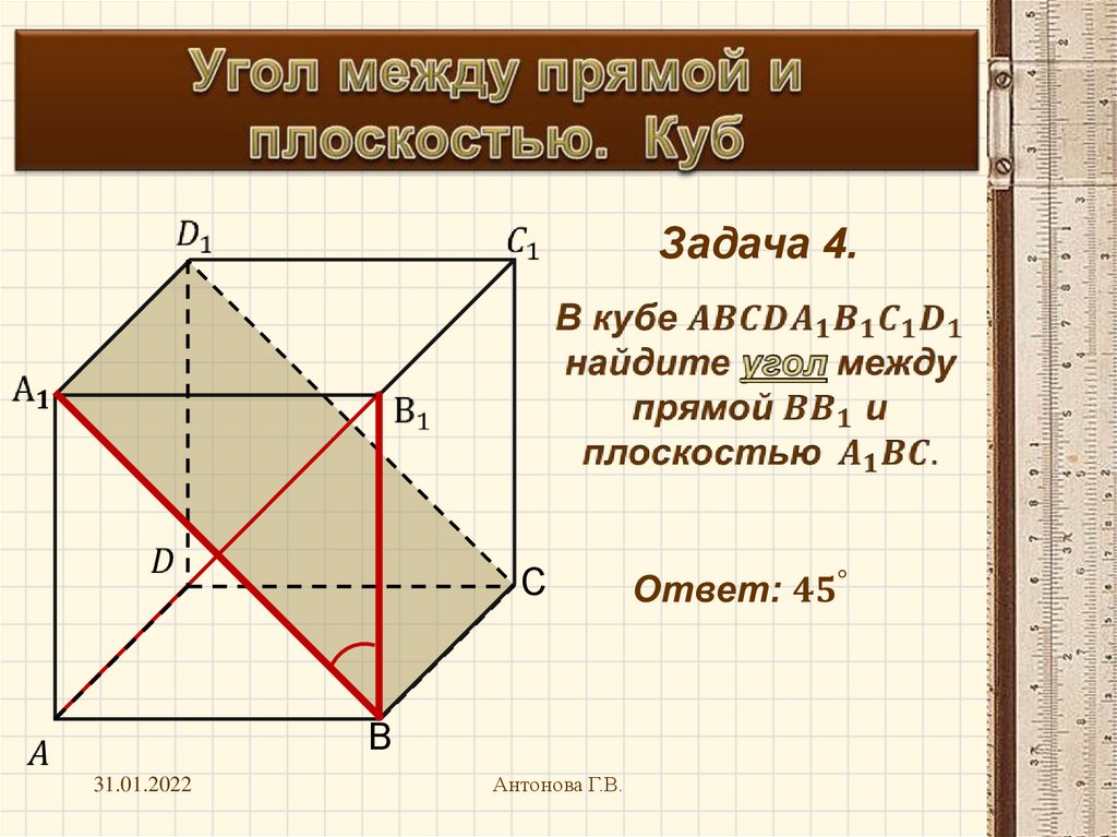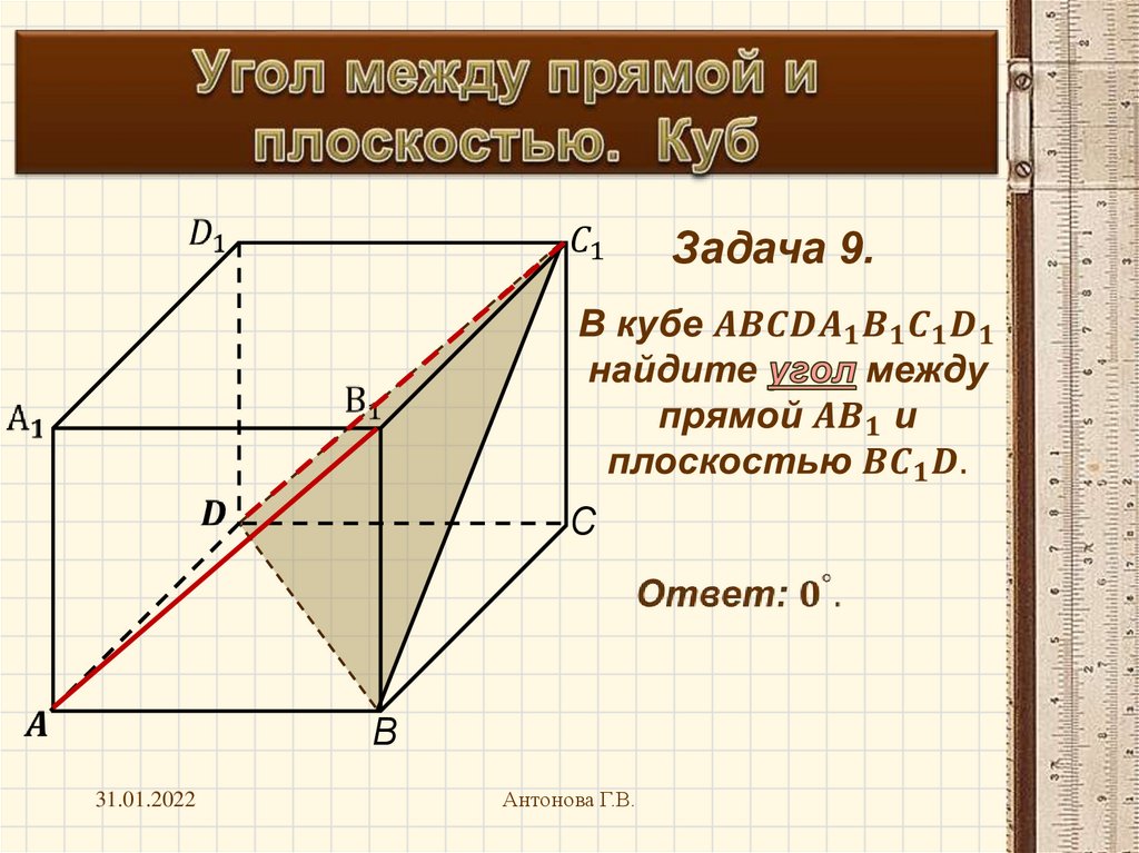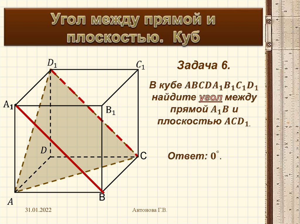 Угол между прямой и плоскостью. Куб