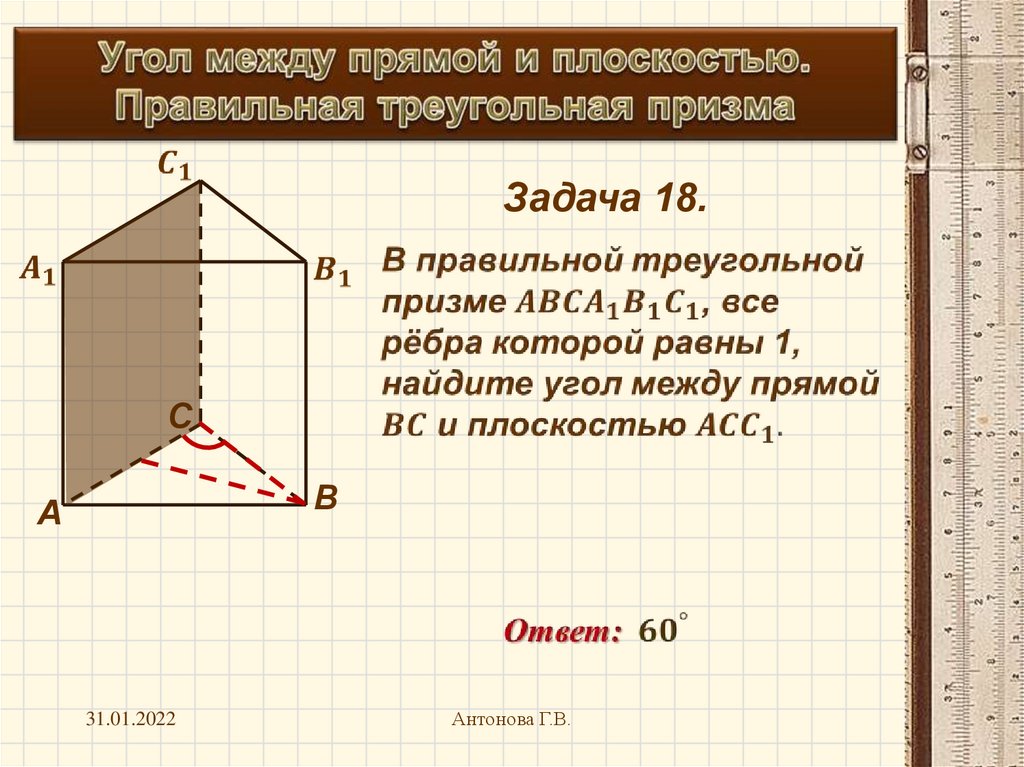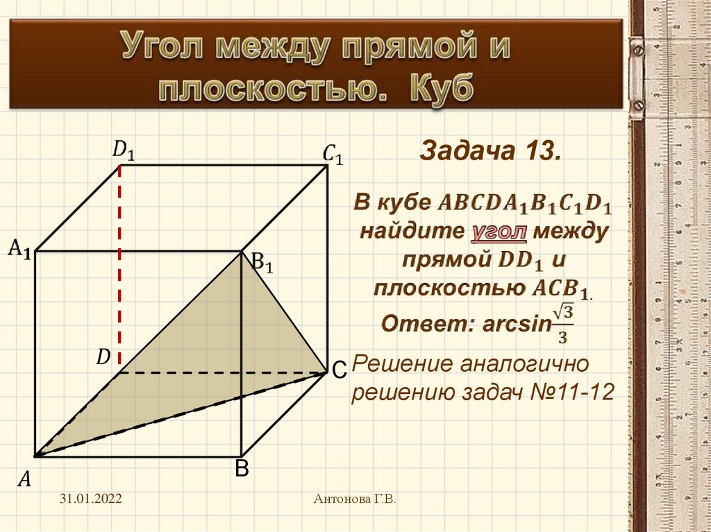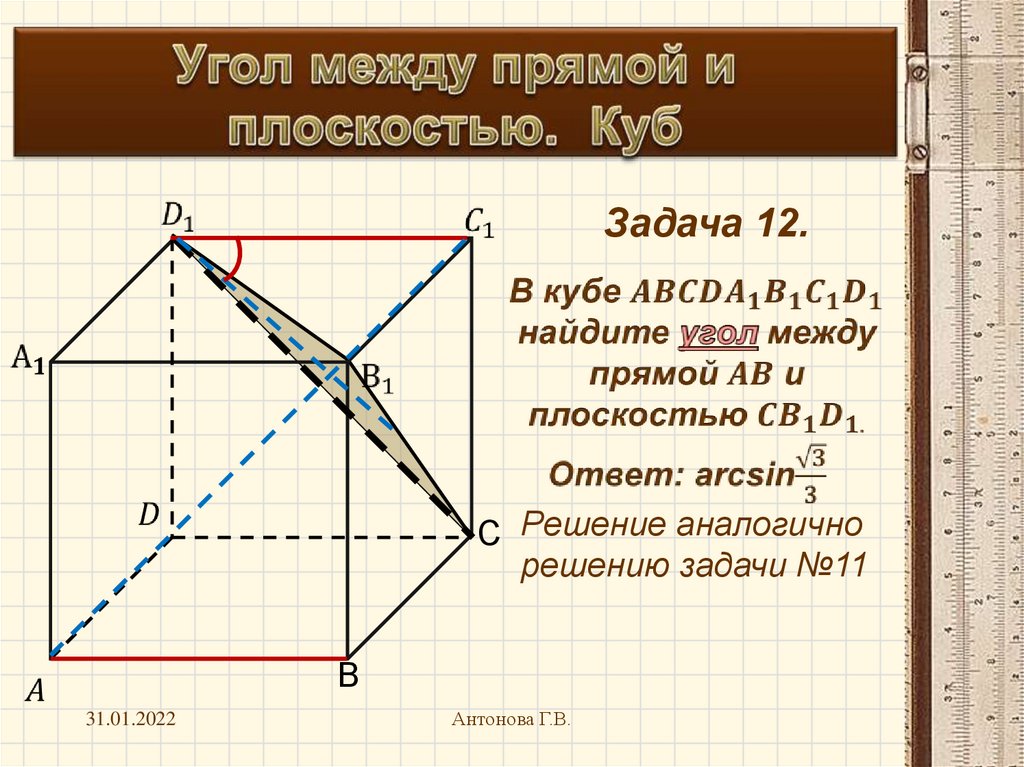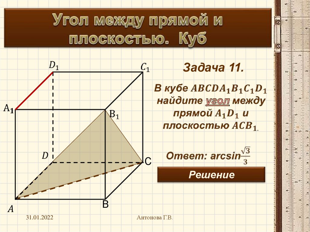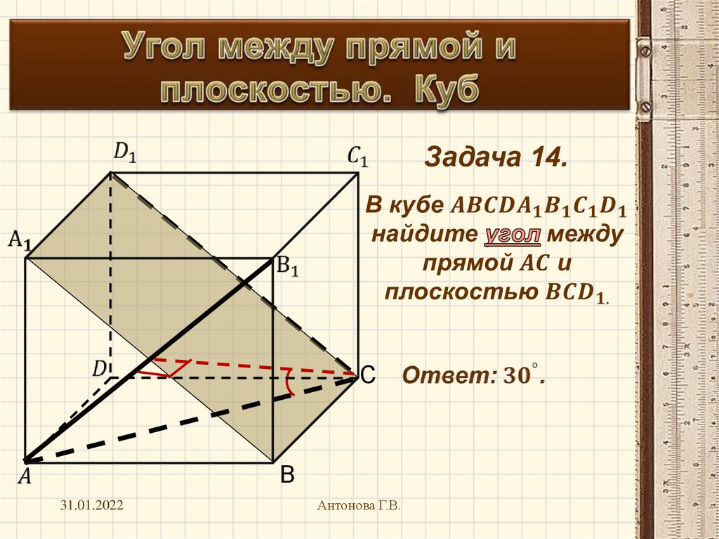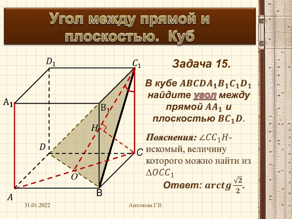 Угол между прямой и плоскостью. Куб