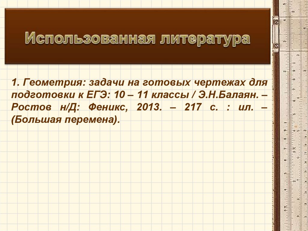 1. Геометрия: задачи на готовых чертежах дляподготовки к ЕГЭ: 10 – 11 классы / Э.Н.Балаян. –