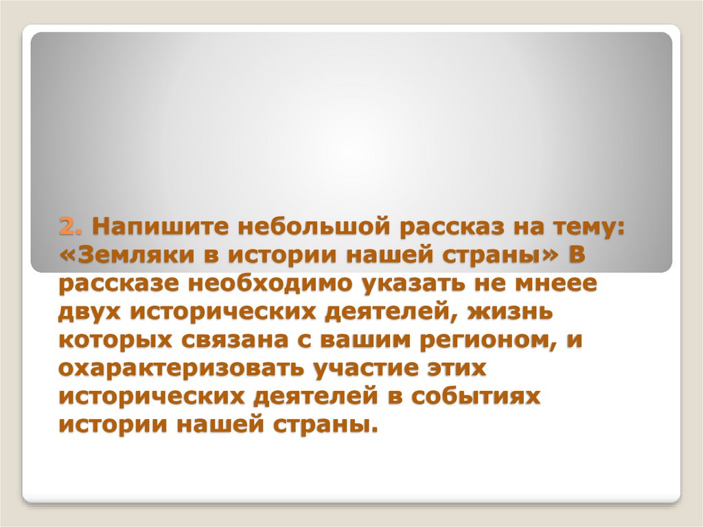 2. Напишите небольшой рассказ на тему:«Земляки в истории нашей страны» В