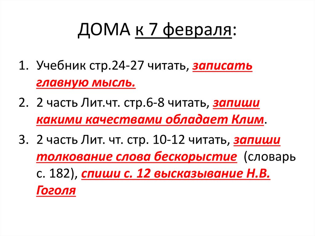 ДОМА к 7 февраля:1. Учебник стр.24-27 читать, записать