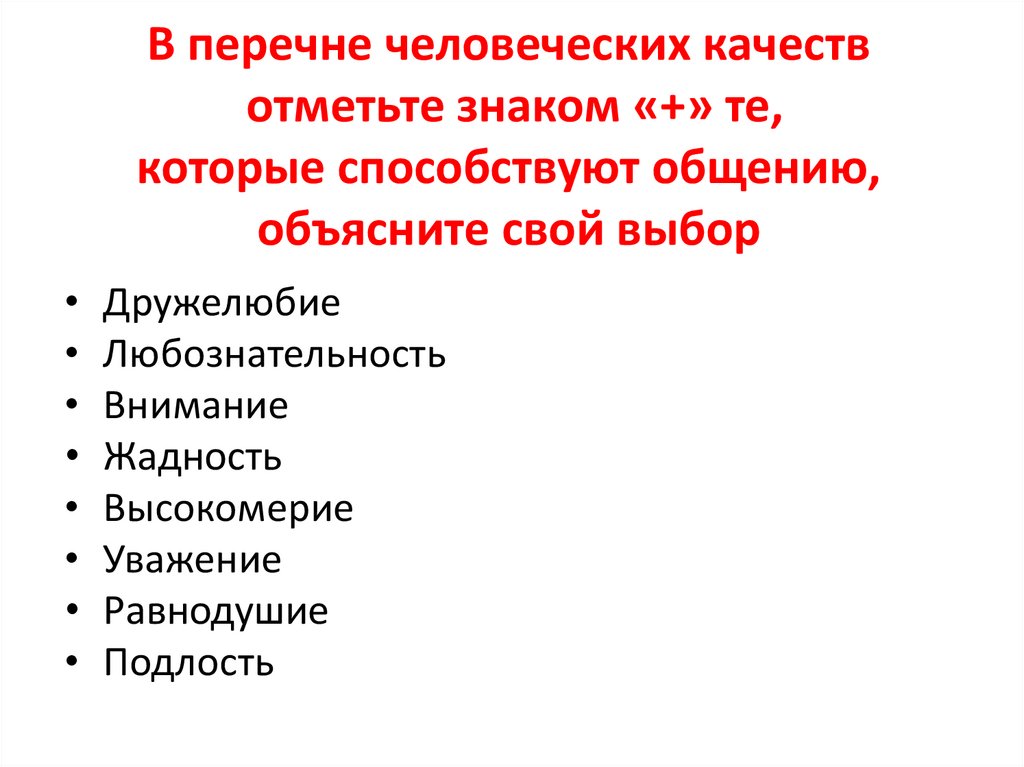 В перечне человеческих качествотметьте знаком «+» те,