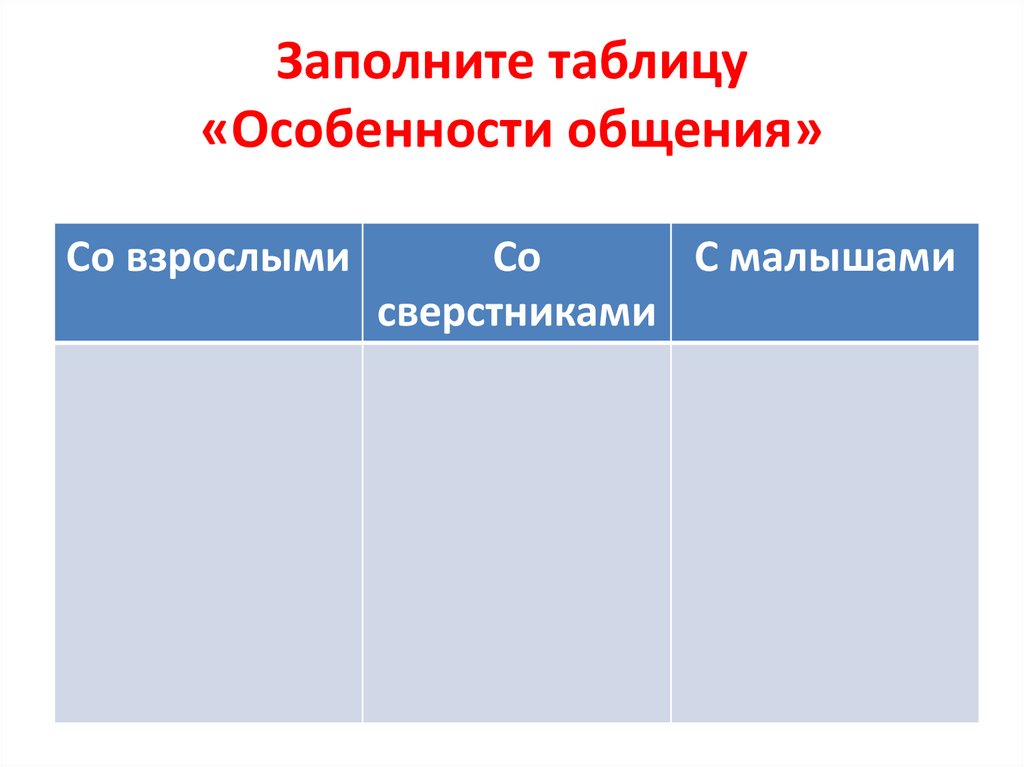 Заполните таблицу«Особенности общения»