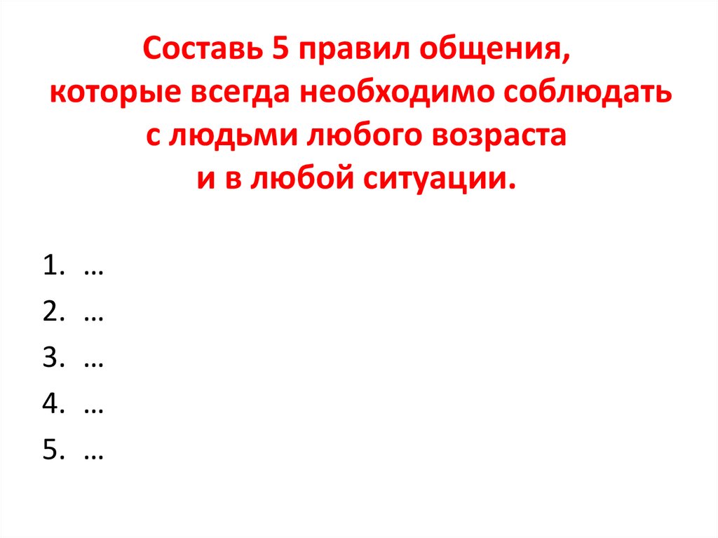 Составь 5 правил общения,которые всегда необходимо соблюдать