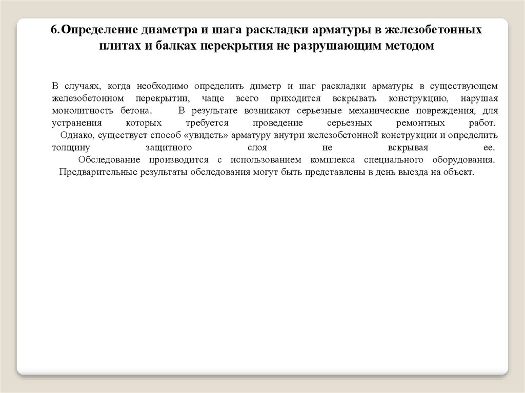 6.Определение диаметра и шага раскладки арматуры в железобетонныхплитах и балках перекрытия не разрушающим методом