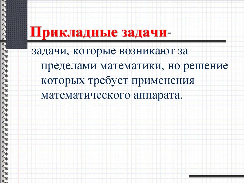 Прикладные задачизадачи, которые возникают запределами математики, но решение