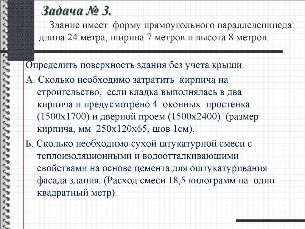 Задача № 3.Здание имеет форму прямоугольного параллелепипеда: