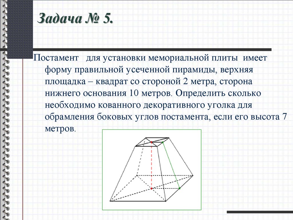 Задача № 5.Постамент для установки мемориальной плиты имеет
