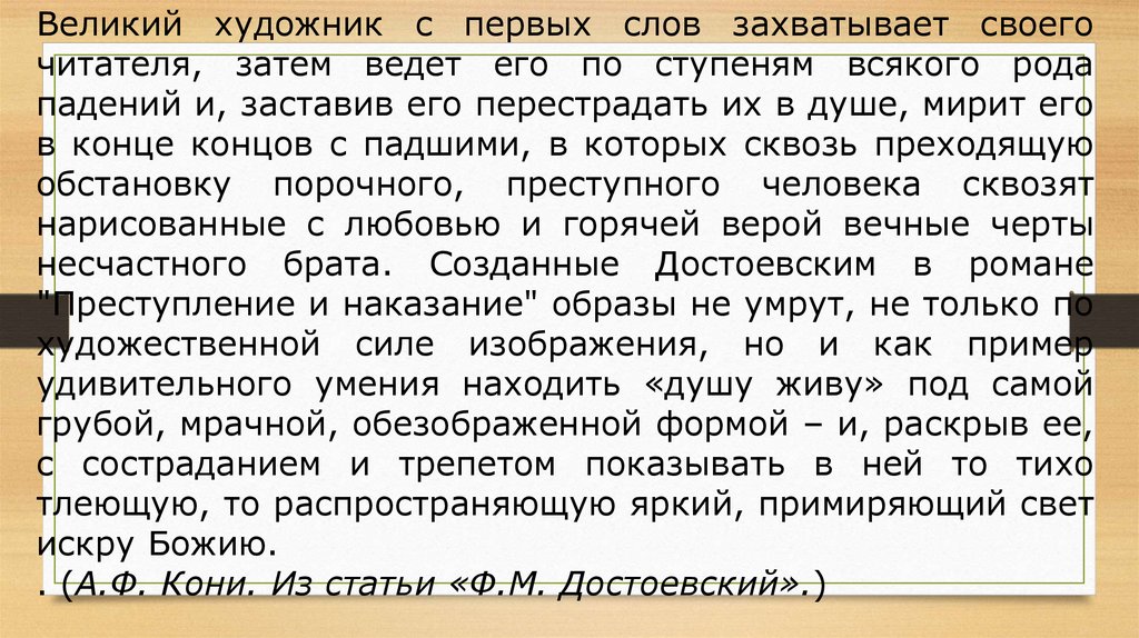 . (А.Ф. Кони. Из статьи «Ф.М. Достоевский».)
