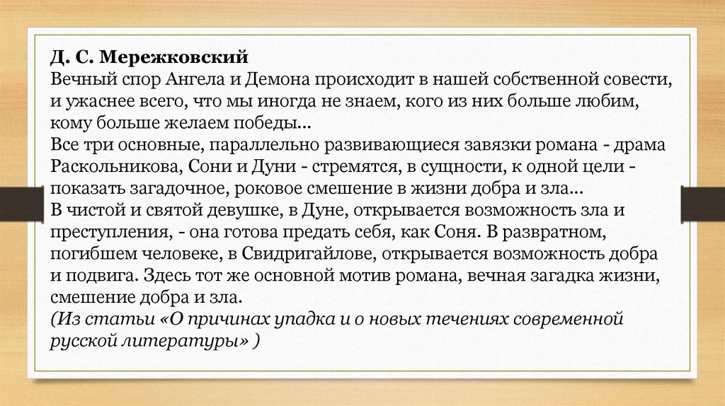 Д. С. МережковскийВечный спор Ангела и Демона происходит в нашей собственной совести,