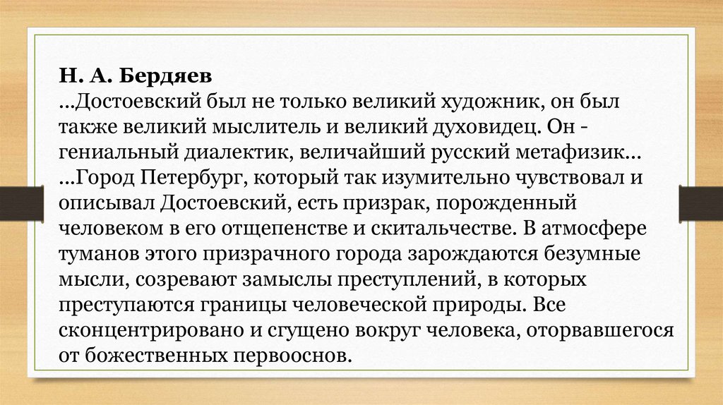 Н. А. Бердяев...Достоевский был не только великий художник, он был