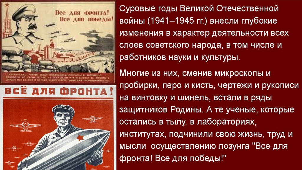 Суровые годы Великой Отечественнойвойны (1941–1945 гг.) внесли глубокие